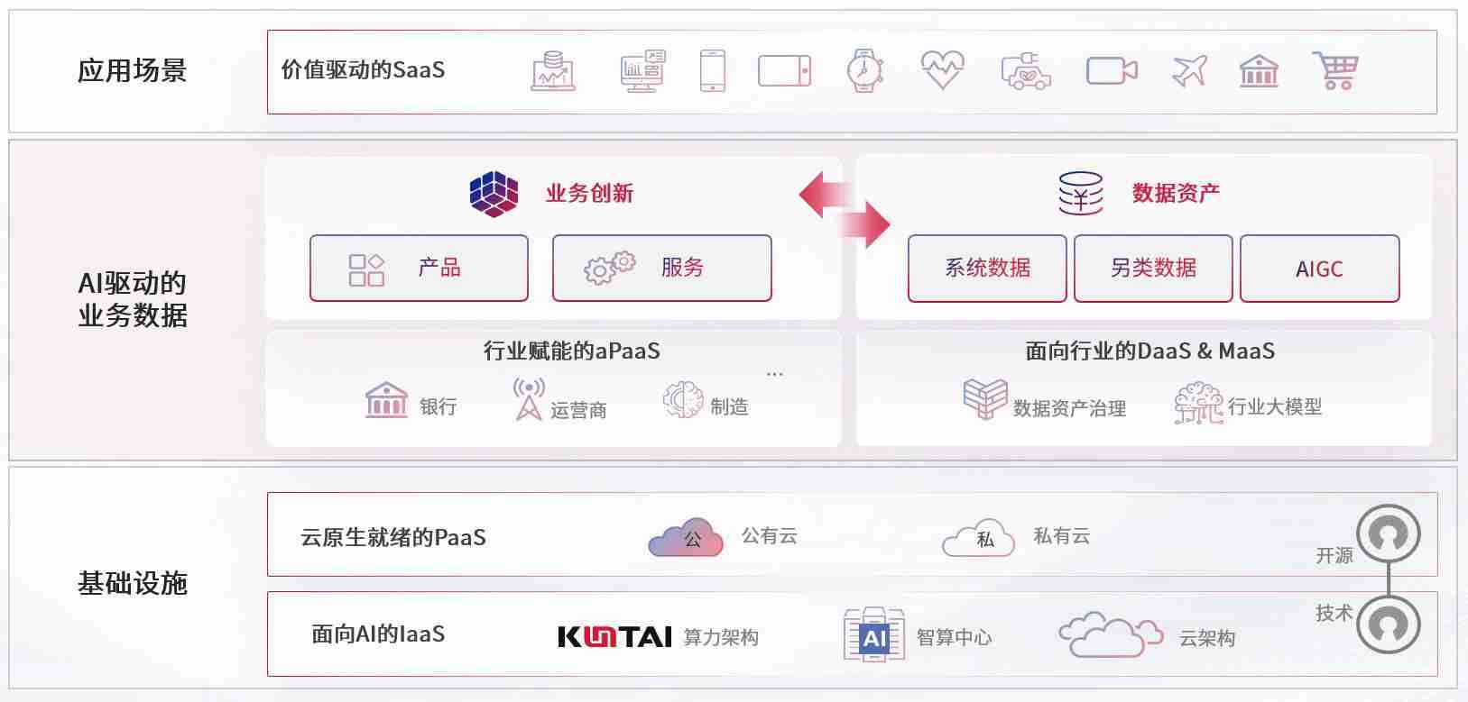 数字时代,,围绕企业数字化转型的关键要素,,,usdt游戏网数码开创性的提出数云融合战略和技术体系框架,,着力在云原生、、数字原生、、、AI原生和信创产业上架构产品和服务能力,,,,为处在不同数字化转型阶段的快消零售、、、、汽车、、金融、、、医疗、、政企、、、教育、、运营商等行业客户提供泛在的敏捷IT能力和融合的数据驱动能力,,构建跨界融合创新的数字业务场景和新业务模式,,,,助力企业级客户建立面向未来的核心能力和竞争优势,,,全面推动社会的数字化、、、智能化转型升级。。。。